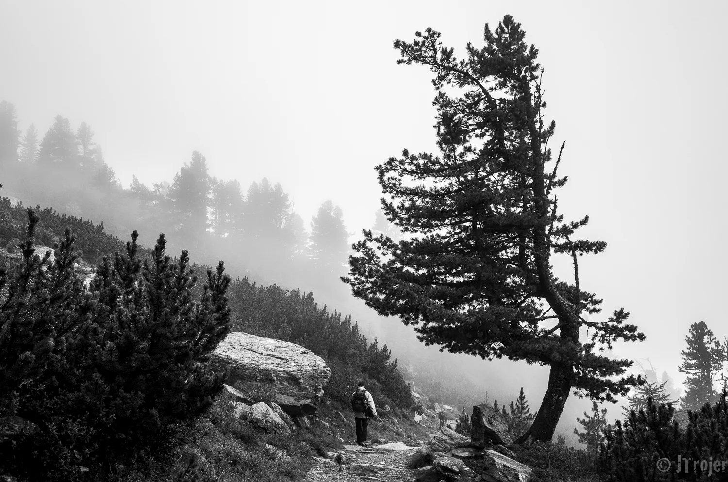 Last weekend I went with a colleague of mine on a photography hike in the Alps. The weather was not great (Overcast and wet) but it was a Sunday and we had nothing better to do so we went up Patcherkofel and walked along the Zirbenweg. Due to the weather I was in a B&W mood :-)